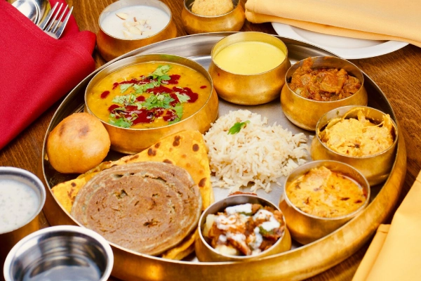 Daal-baati (locally famous), thali platters, seasonal sabzis and hot rotis — perfect for travellers and families.